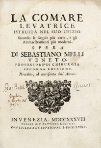 Melli Sebastiano, La Comare levatrice istruita nel suo ufizio. Secondo le Regole più certe, e gli Ammaestramenti più moderni... In Venezia: Presso Gio. Battista Recurti, 1738.