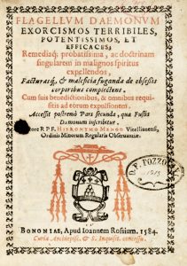 Menghi Girolamo, Flagellum daemonum exorcismos terribiles, potentissimos, et efficaces; remediaque [...] in malignos spiritus expellendos [...] complectens. Bononiae: apud Ioannem Rossium, 1584.