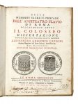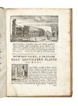 2 parti in 1 volume in-4° (mm 272x188). Pagine [12], 195, [1]; [8], 77, [1] + 39 [di 40] tavole fuori testo incise in rame, alcune ripiegate, e numerose impressioni calcografiche nel testo. Ottima conservazione, alcune carte leggermente allentate. Legatura coeva in piena pergamena rigida con titolo in oro su falso tassello al dorso. SI AGGIUNGE: Marangoni Giovanni, Delle memorie sacre, e profane dell'anfiteatro Flavio di Roma volgarmente detto il Colosseo... In Roma: nella stamperia di Niccolò, e Marco Pagliarini, 1746. In-4° (mm 235x172). Pagine XVI, 88. Piccola raffigurazione in xilografia del Colosseo a carta A, frontespizio impresso in due colori. Fioriture e occasionali macchie. Legatura coeva in piena pergamena rigida con titolo in oro su falso tassello al dorso. Ex-libris di precedente proprietario applicato al contropiatto anteriore. (2)