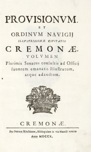 Provisionum et ordinum Navigij illustrissimae civitatis Cremonae... Cremonae: per Petrum Ricchinum, 1710.