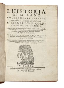 Corio Bernardino, L'Historia di Milano volgarmente scritta [...] con le vite insieme di tutti gli imperatori, incominciando da Giulio Cesare, fino à Federico Barbarossa... In Padoa: nella stamparia di Paolo Frambotto, 1646.