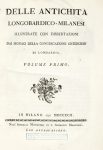 In-4° (mm 240x180 mm). Pagine [20], 132 pagine. Antiporta figurata incisa da Giovanni Paolo Bianchi raffigurante lo stemma araldico dei Visconti fiancheggiato da tritoni, ritratto del dedicatario dell'opera sul verso del frontespizio e 13 ritratti incisi a piena pagina; testatine, capilettera e finalini xilografici. Esemplare fortemente rifilato, con il primo fascicolo parzialmente staccato; macchie e fioriture intense ad alcune carte. Legatura successiva in mezza pelle, con punte e piatti in carta marmorizzata; titoli in oro su tassello al dorso. Sguardie rinnovate. Staccata la cerniera del piatto anteriore, e forellini di tarlo al dorso. SI AGGIUNGE: Fumagalli Angelo, Delle antichità longobardico-milanesi illustrate [...] Volume primo (- quarto). In Milano: nell'imperial monistero di S. Ambrogio Maggiore, 1792-1793. (5)