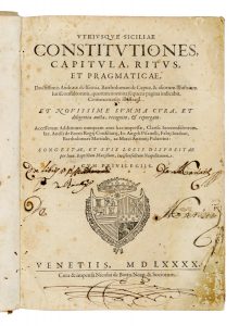 Utriusque Siciliae constitutiones capitula ritus et pragmaticae... Venetiis: Nicolai de Bottis Neap. & Sociorum, 1590.