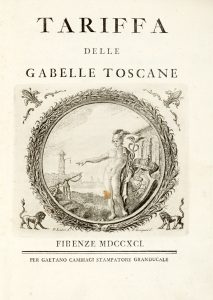 Tariffa delle gabelle Toscane. Firenze: per Gaetano Cambiagi stampatore granducale, 1791.