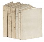 In-4° (mm 220x180). Pagine [2], 67, [1], 205 [3], 207-256, [2]. Buon esemplare in barbe, parzialmente intonso. Integrazioni di carta con errata applicati al margine inferiore di alcune carte. SI AGGIUNGE: Tariffa delle gabelle per Pisa. Firenze: per Gaetano Cambiagi stampatore granducale, 1783. In-4° (mm 220x180). Pagine [2], 312, [2]. Margini di alcune carte più corti. SI AGGIUNGE: Tariffa delle gabelle per Pistoia. Firenze: per Gaetano Cambiagi stampatore granducale, 1791. In-4° (mm 220x180). Pagine [2],110, [2]. SI AGGIUNGE: Tariffa delle gabelle per Firenze. Firenze: per Gaetano Cambiagi stampatore granducale, 1791. In-4° (mm 220x180). Pagine [2],104, [2]. SI AGGIUNGE: Tariffa delle gabelle per Firenze. Firenze: per Gaetano Cambiagi stampatore granducale, 1781. In-4° (mm 220x180). Pagine [2], 312, [2]. Rare macchie. Margini di alcune carte più corti. SI AGGIUNGE: Tariffa delle gabelle per Siena. Firenze: per Gaetano Cambiagi stampatore granducale, 1783. In-4° (mm 220x180). Pagine [2], 274, [2]. Lievi e sporadiche fioriture; margini di alcune carte più corti. I 6 volumi hanno tutti la medesima incisione calcografica al frontespizio, le barbe e la legatura in cartonato rustico con titoli manoscritti al dorso. (6)