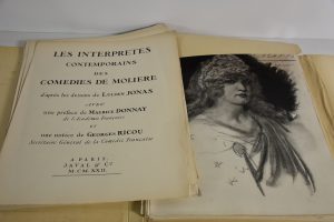 LES INTERPRETES CONTEMPORAINS DES COMEDIES DE MOLIERE d'après les dessins de LUCIEN JONAS, préface de MAURICE DONNAY, notice de GEORGES RICOU. IN FOLIO 147/300 sur vélin. UN PORTRAIT DE MOLIERE, FAC SIMILE AFFICHE, SIGNATURE ET PAGE DE REGISTRE,...
