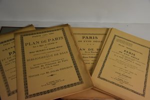 PL PLAN MONUMENTAL de PARIS au XVIIème siécle par J. GOMBOUST, couv, complet des 10 PL. PLAN de PARIS, PARIS en 1710, par BULLET et BLONDEL augmenté par JAILLOT, couv, complet des 12 PL. PARIS SOUS NAPOLEON 1er. La topographie de PARIS OU PLAN détaillé de la ville de PARIS et de ses faubourgs par MAIRE, rues de PARIS sous la révolution par A. FRANKLIN, couv, complet des 6 PL. PARIS AU XVIIIème siécle, PLAN DE PARIS en 20 pl (TURGOT) par LOUIS BRETEZ, couv, complet. JOINT : notice sur le plan de MATHIEU MERIAN et divers plans de PARIS (fac similé). DOCUMENTS REUNIS DANS UNE CHEMISE AVEC TITRE, MANQUE LES RUBANS.