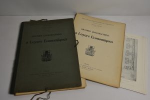 GASTON LEFOL, GRANDES CONSTRUCTIONS A LOYERS ECONOMIQUES, PARIS, CH. MASSIN sd (1920). Folio en feuilles, 16 p, 43 pl sur 47 il manque la pl 6, 8, 16, 40. Dans une chemise avec titre et rubans. EX-LIBRIS MARTINON. Dos fragile.