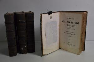 FULGENCE GERARD, MYSTERES DU GRAND MONDE, histoire des palais, résidences royales, abbayes, boudoirs et salons. PARIS, librairie illustrée sd.ILLUSTRATIONS par T. JOHANNOT, KARL GIRARDET… 4 vol, in 4°, demi chag, titre et sous titre, caissons...