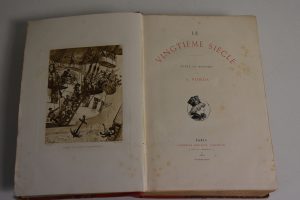 LE VINGTIEME SIECLE, texte et dessins par ROBIDA, PARIS, GEORGES DECAUX 1883. In 4°, couv conservée, 404 p DEMI TOILE SOIE, TITRE SUR PIECE, FLEURON.Coins émoussés.