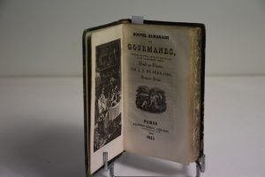 NOUVEL ALMANACH des GOURMANDS (dédié au ventre) par A.B. DE PERIGORD, PARIS, BAUDOUIN FRERES 1825. In 16, xxiv, 238 p, p 221 et 223 interverties. Frontispice et vignette. Demi bas, titre et dos fileté.