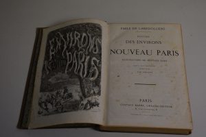 EMILE DE LABEDOLIERE, HISTOIRE DES ENVIRONS DU NOUVEAU PARIS, PARIS, GUSTAVE BARBA, sd. Illustrations de GUSTAVE DORE, CARTES TOPOGRAPHIQUES dessinées et gravées par EHRARD. In 8°, 444 p. In 4°, 444 p, demi bas, dos fileté, titre. FROTTEMENTS...