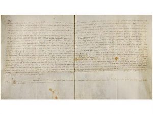1397. (MIRALLES-ANOIA?). BERTRAN DE MONTOLIU, SENOR DE PERALTA COMO ADMINISTRADOR DE GALCERAN DE MIRALLES , HEREU DEL CASTELL DE MIRALLES, RENUNCIA A LOS DERECHOS QUE PUDIERA TENER SOBRE EL CASTILLO Y RECIBIR DINERO A CAMBIO. Pergamino. 30x50 cm.