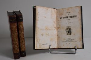 HISTOIRE DE GIL BLAS DE SANTILLANE par LESAGE, PARIS, POURRAT 1838, xxxij, 400, 459, 388 p. in8°, demi veau, titre, tomaison, dos orné.