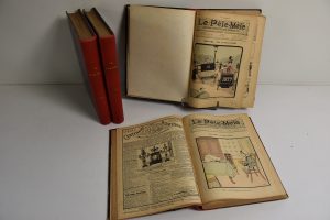 LE PELE-MELE, 1899, 1900, 1901, 1902, journal humoristique hebdomadaire. IN 4°, demi toile avec titre. ILLUSTRATIONS PAR ROBIDA, CAPY, BENJAMIN RABIER, MIRANDE…