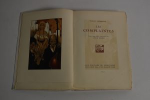 JULES LAFORGUE, LES COMPLAINTES, EDIT DU SAGITTAIRE 1923. 128 lithographies dont le frontispice de GEO A. DRAINS. In 8°, broché, 236 p, 36/500 sur vélin.