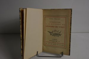 PAUL VALERY, introduction à la méthode de LEONARD DE VINCI, N.R.F.1919. In 8°, 100 p, couv et dos conservés. Demi parchemin, tête or, titre et dos orné façon art déco. RELIURE SIGNEE FRANZ.