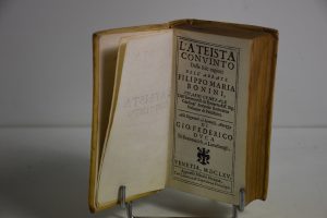 L'ATEISTA CONVINTO dalle fole ragioni DELL ABBATE FILIPPO MARIA BONINI, VENETIA 1665. In 16, 535 p + 3. Plein vélin tranche or, richement décoré.