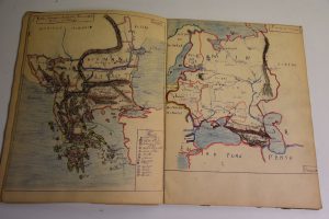 ALBERT DAUZAT, (1877-1955), atlas d'environ 29 cartes dessinées sur papier quadrillé et mis en couleur par A. DAUZAT, elles sont toutes signées, certaines datées 1891. In folio en partie décousu. Cartes de la SUISSE, NORVEGE, Allemagne... A....