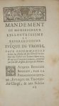 RELIURE AUX ARMES DE JACQUES-BÉNIGNE BOSSUET, neveu et légataire universel du grand Bossuet dont il portait le même prénom, les mêmes armes (fer différent cependant) et qui, prélat comme lui, était évêque de Troyes (1664-1743).