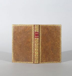 SAY Jean-Baptiste. Petit volume contenant quelques aperçus des hommes de la société. Paris, Deterville, 1817 ; in-16, reliure de l'époque basane racinée, petite dentelle sur les plats, dos lisse orné, pièce rouge.
