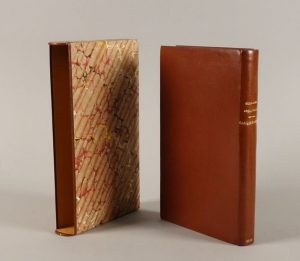 APOLLINAIRE Guillaume. Calligrammes. Poèmes de la Paix et de la Guerre. 1913-1916. Paris, Mercure de France, 15 avril 1918 ; in-8 reliure ancienne chagrin à grain écrasé marron, titre doré en forme circulaire sur le plat supérieur, dos lisse, non rogné, couverture et dos, étui.