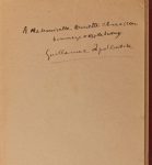 ENVOI AUTOGRAPHE SUR LA PAGE DE FAUX-TITRE : « À Mademoiselle Henriette Charasson hommage respectueux Guillaume Apollinaire ». Correction autographe d'Apollinaire à un vers de la page 189 : « Poète honore-la souci de la Beauté non souci de la Gloire » est corrigé à l'encre en « Poète honore-la souci, être parfait, non souci de la Gloire ». - L'exemplaire porte des soulignures et des marques de lecture au crayon bleu à 13 pages. Elles semblent être de la femme de lettres Henriette Charasson (1884-1972), auteur d'un article sur Calligrammes paru dans L'Action française, 6 août 1918, dont elle était collaboratrice sous le pseudonyme d'Orion. - Papier un peu bruni, comme tous les exemplaires de cette édition.