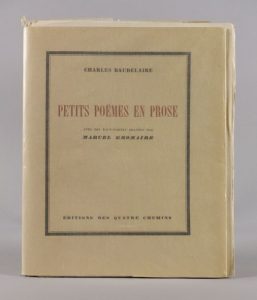 BAUDELAIRE Charles BAUDELAIRE Charles. Petits poèmes en prose. Paris, Éditions des Quatre Chemins, 1926 ; in-4 …