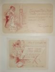 En tête envoi autographe de l'auteur à Gaston Tissandier et 3 faire-part de naissance illustrés des enfants de Beraldi : Cécile (1887), André (1889), Hélène (1891).