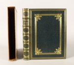 BERALDI Henri. Estampes et Livres. 1872-1892. Paris, L. Conquet, 1892, petit in-4, reliure de l'époque maroquin vert bouteille, sur les plats large encadrement de filets dorés avec ornements floraux aux angles, dos à nerfs très ornés de motifs dorés, dentelle intérieure et tranches dorées sur témoins, couverture et dos, étui (Marius Michel).