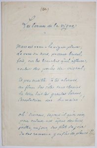 BOUILHET Louis BOUILHET Louis. Les Larmes de la Vigne. Poème autographe signé, portant le n° (20). (Paris, …