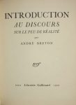 BRETON André BRETON André. Introduction au discours sur le peu de réalité. Paris, Gallimard, 1927 ; in-4, …