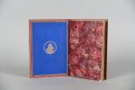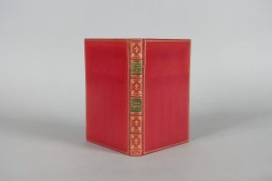 CARROLL Lewis. Aventures d'Alice au Pays des Merveilles. Traduit de l'anglais par Henri Bué. Londres, Macmillan and Co., 1869 ; in-12, reliure ancienne veau teinté rouge, dos à nerfs orné de motifs dorés, pièces vertes, dentelle intérieure et tranches dorées (Henry Sotheran). Un mors fendu.