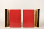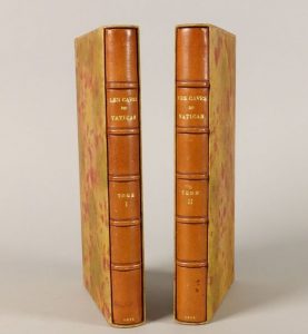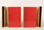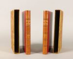 [GIDE André]. Les Caves du Vatican. Sotie, par l'auteur de Paludes. Paris, NRF, 1914 ; 2 vol. in-8, reliures maroquin rouge, dos à nerfs, têtes dorées, couvertures orange et dos, étuis (Malcorps).