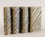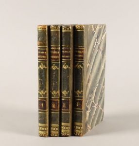 GOETHE, Johann-Wolfgang von. Wilhelm Meister. Traduit de l'allemand par Théodore Toussenel. Paris, Jules Lefebvre et Cie, 1829 ; 4 vol. in-12, demi-veau olive de l'époque, dos lisses ornés de motifs dorés et à froid (Relié par Bonnaud Rue St Jacques n° 124 à Paris).