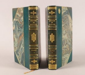 GOETHE Johann-Wolfgang von. Mémoires. Traduits de l'allemand par M. Aubert de Vitry. Paris, Ponthieu 1823, 2 volumes in-8, demi-maroquin vert à coins, dos à nerfs ornés de motifs dorés, têtes dorées (Gruel). Édition originale de la traduction. Portrait lithographié. Exemplaire très bien relié au monogramme de Seymour de Ricci.