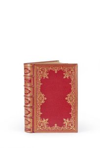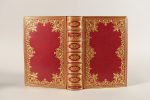 HAMILTON Antoine. Mémoires du comte de Grammont. Paris, Conquet, 1888 ; in-4, reliure de l'époque maroquin rouge, large dentelle dorée sur les plats, dos à nerfs entièrement orné de motifs dorés, doublures et gardes de soie brochée, large dentelle intérieure dorée en encadrement et tranches dorées (Noulhac. 1918).
