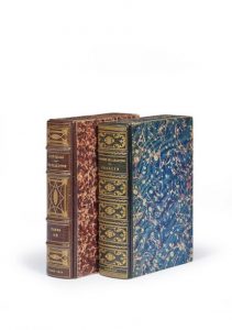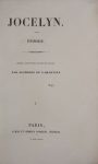 LAMARTINE Alphonse de. Jocelyn. Épisode. Journal trouvé chez un curé de village. Paris, Charles Gosselin ; Furne, 1836 ; 2 vol. in-8 brochés sous chemise à dos de maroquin à long grain vert et étui de René Aussourd.