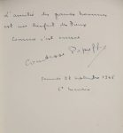 Inscription autographe de la comtesse Popoff en tête : « L'amitié des grands hommes est un bienfait des Dieux. Comme c'est