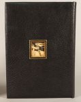 La reliure est ornée, sur un plat, de la tête de corbeau de la couverture découpée en cercle et, sur l'autre, de la marque de Deman découpée en carré, le tout sous rhodoïd.