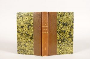 MAUPASSANT Guy de. Contes de la bécasse. Paris, Éd. Rouveyre et G. Blond, 1883 ; in-12, reliure de l'époque bradel demi-maroquin brun, tête dorée, couverture et dos (Canape).