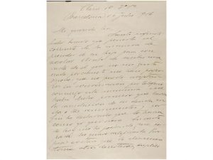 1916. CARTA MANUSCRITA Y FIRMADA POR JAIME BROSSA DIRIGIDA A UN FAMILIAR SUYO. 2 h. manuscritas por una cara. Firmada en Barcelona, 15 de julio de 1916. Jaime Brossa i Roger fue un dramaturgo y articulista catalan (1875-1919) de tendencia anarquista...