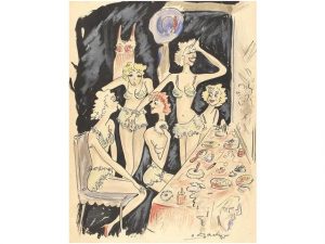 1945. BACH, O.: CABARETISTAS EN EL CAMERINO. Original artìstico, 21,5x16 cm.