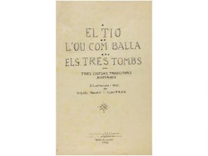 1962. PALAU CLAVERAS, MIQUEL [texto y ilustraciones]: ORIGINAL PARA EL LIBRO: EL TIO, L'OU COMBALLA, ELS TRES TOMBS, TRES COSTUMS ORIGINALS. Barcelona: 1962. Texto y 14 ilustraciones originales y texto mecanografiado con correcciones.