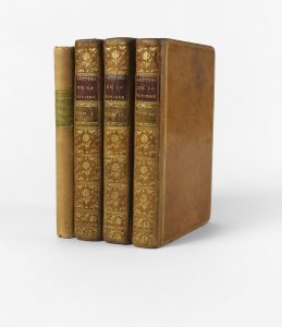 - Lettres de Madame la Comtesse de la Rivière… Paris, Froullé, 1776; 3 vol, in 12, veau blond orné d'époque. - Le Tableau des Piperies des Femmes Mondaines, Bruxelles, 1866; In 12, cartonnage de l'époque. Provenance : collection de...
