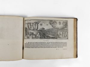 TESTAMENT.: Figures de l'Ancien et du Nouveau Testament. Gravées par Peter Van der Borcht avec le texte explicatif en flamand In 8° oblong, veau brun orné de l'époque Il manque le f. de titre, reliure usagée. Provenance: Famille patricienne...