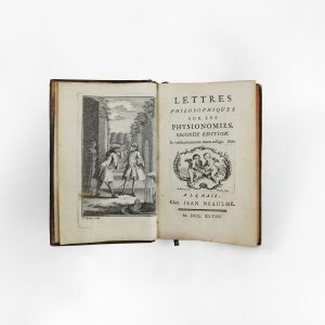 [PERNETTI]: Lettres Philosophiques sur les Physionomies. La Haye, 2ème éd., J Neaulme, 1748; In 12, veau blond orné (rel. restaurée). De la Bibl. de Beaumont conseiller du Roi avec son ex libris. Front. gravé par Mathey. Provenance : collection...