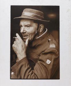Marcel Imsand (1929-2017) Policier à la cigarette, tirage photographique contrecollé sur aluminium, 51x35 cm