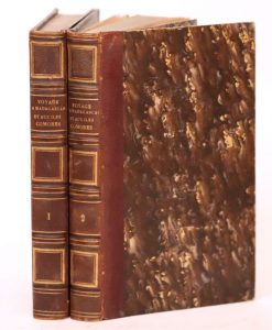 LEGUÉVEL DE LACOMBE (B.-F.) Voyage à Madagascar et aux îles Comores (1823 à 1830). Paris, Louis Desessart, 1840. 2 volumes in-8, demi-chagrin brun, dos orné de caissons au filet doré, tranches mouchetées (Reliure de l'époque). Édition originale de cet ouvrage recherché sur Madagascar, précédé d'une Notice historique et géographique d'Eugène de Froberville.