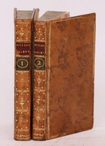 [MISSIONS ÉTRANGÈRES]. Nouvelles des Missions orientales reçues au séminaire des Missions étrangères, à Paris, en 1785 et 1786. Amsterdam ; Paris, veuve Hérissant, 1787. 2 volumes in-12, veau marbré, triple filet doré, dos lisse orné, tranches marbrées (Reliure de l'époque). Édition originale.